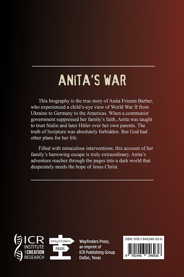 This biography is the true story of Anita Friesen Barber, who experienced a child’s-eye view of World War II from Ukraine to Germany to the Americas. When a communist government suppressed her family’s faith, Anita was taught to trust Stalin and later Hitler over her own parents. The truth of Scripture was absolutely forbidden. But God had other plans for her life.